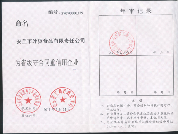 经农业部、国家发展和改革委员会、财政部、商务部、中国人民银行、国家税务总局、中国证券监督管理委员会、中华全国供销合作总社联合审定,我公司被评为农业产业化国家重点龙头企业。